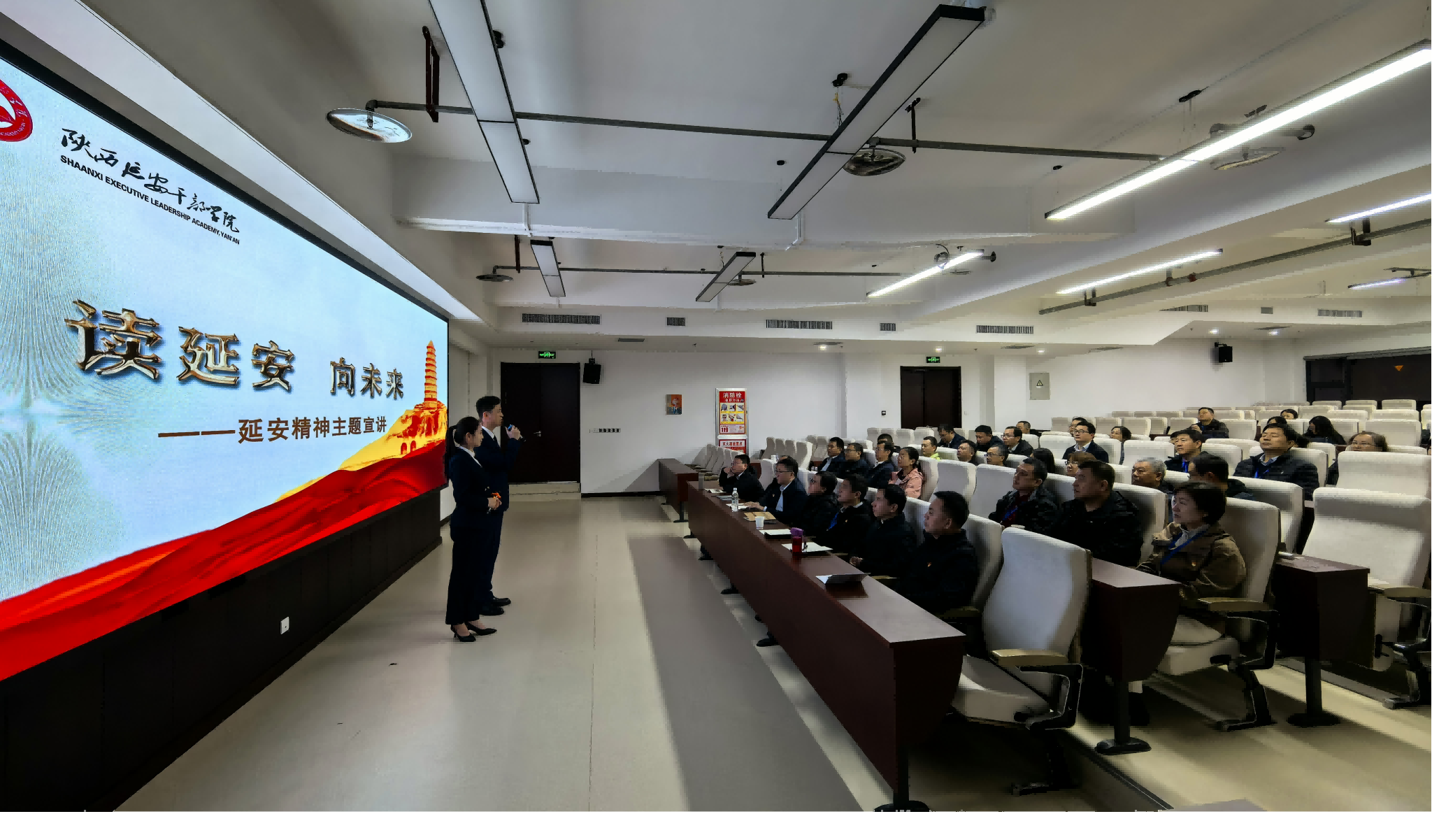 宣讲团的7名青年讲师作“读延安 向未来——延安精神主题宣讲”,围绕《延安的窑洞有马列主义》《做新时代白求恩精神的践行者》《毛泽东与毛岸英的家国父子情》《新时代最美奋斗者》《从“小鲁艺”迈向“大鲁艺”》等主题,结合珍贵历史影像和感人事迹,以微党课、红色家书诵读、配乐诗朗诵等形式讲述党的故事、革命故事、延安故事,深入解读了其中蕴含的自力更生、艰苦奋斗、实事求是、理论联系实际、全心全意为人民服务等精神实质,多维度展现延安精神的深刻内涵和时代价值,增强学习感染力,引发学员强烈共鸣。