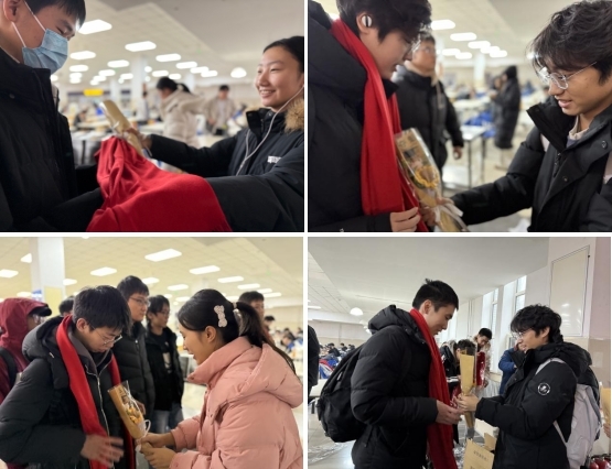 老师们早早在此等候,与考研学子亲切交流,缓解同学们考前压力,叮嘱同学们沉着应考,祝福同学们金榜题名。学弟学妹们为学长学姐亲手系上寓意“前程似锦”的红色围巾,送上象征“一举夺魁”的向日葵花束,真诚祝福学长学姐梦想成真。永利娱乐城