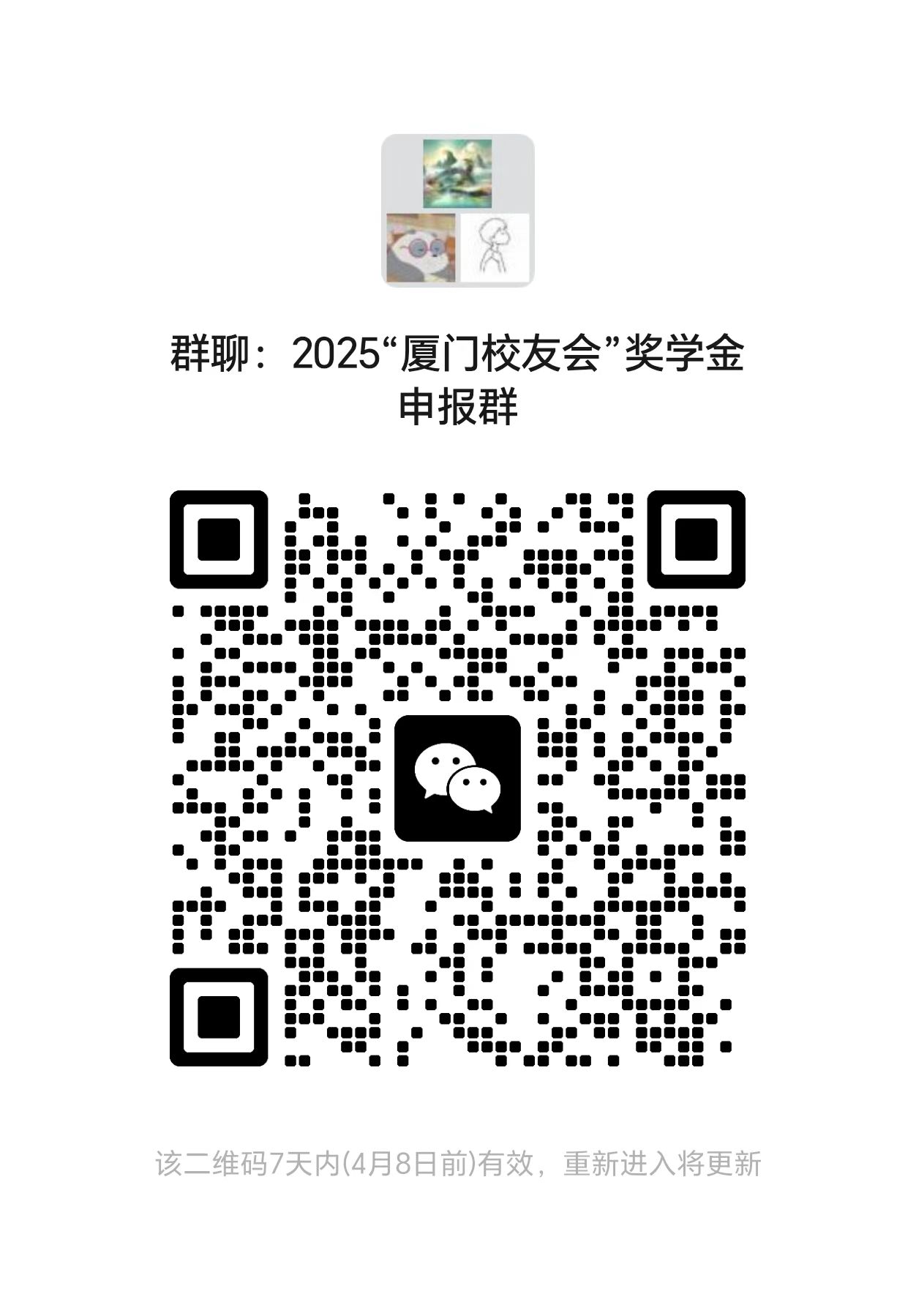(3)报名研究生扫描二维码加入“2025年度“厦门校友会”奖学金申报群”。
