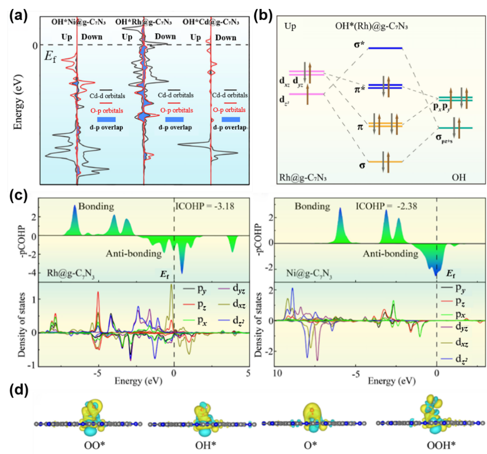 图4 单原子活性位点和基底的轨道杂化和杂化构型