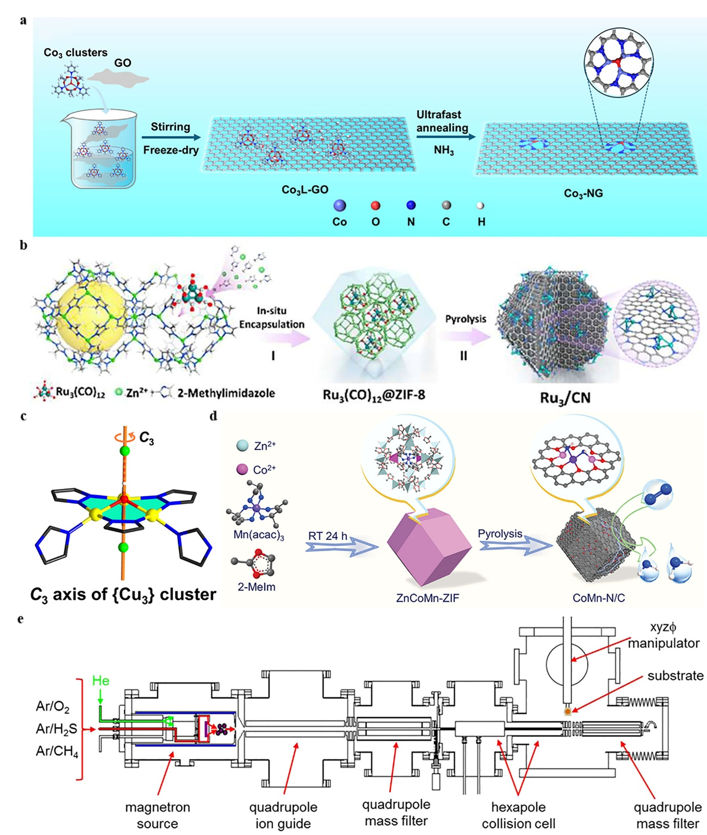 首先,基于对已报道的MACs合成策略的分析,介绍了主要存在的五种常用且有效的MACs的制备合成策略,即前驱体预选-热解策略、空间限域-热解策略、配位稳定策略、MOF-热解策略和簇沉积策略。不同的合成策略具有各自的优缺点,需要根据不同的需求选择和设计,比如同核/异核MACs,结构的稳定性等。合成具有多原子位点结构的MACs通常需要满足至少原子级分散、避免金属迁移和聚集以及具有明确的多原子结构。
